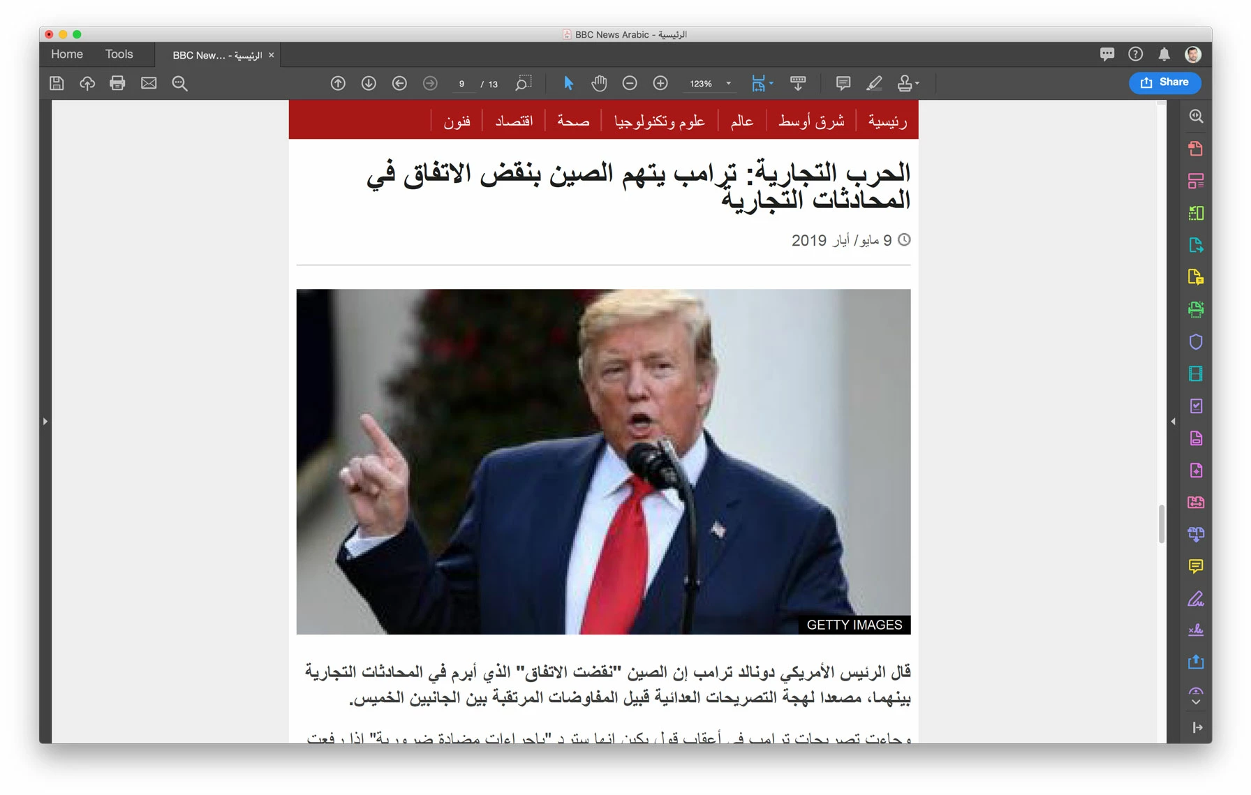 is displaying the word like this: م ا ل س ل ا in Adobe Acrobat - has this issue been fixed?