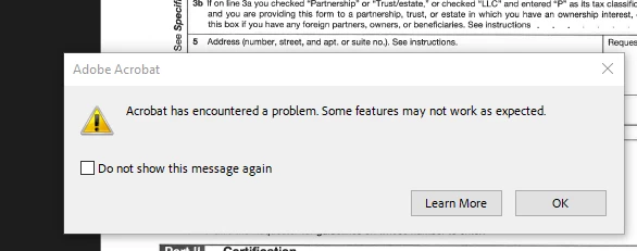In addition, almost EVERY time I do anything with a document I get the error message below (4th photo). Any ideas why that keeps happening and why Adobe is not addressing these issues?
