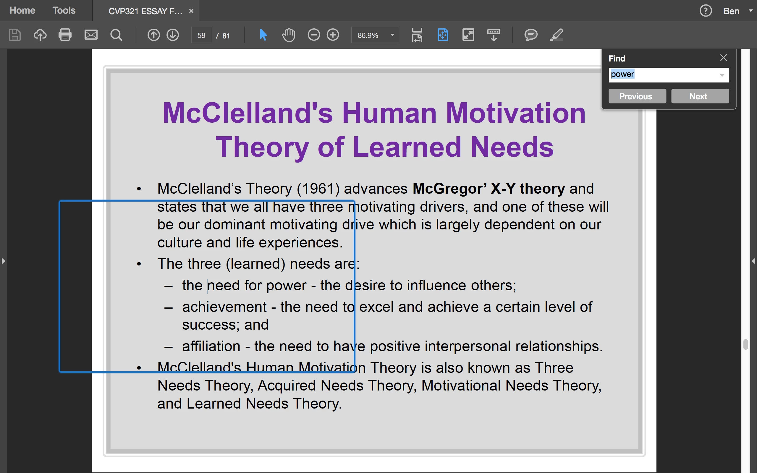 I am using Adobe Acrobat Reader DC for mac and am having an issue with the find text function. When I search a word, a large blue bond appears around the word (see photo), instead of highlighting the 'searched word' as usual. When I select next, it will only move a word at a time and not jump to the next 'searched word' in the document.