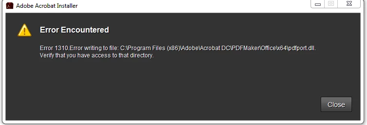 Error 1310 on Adobe Acrobat DC installation attempt