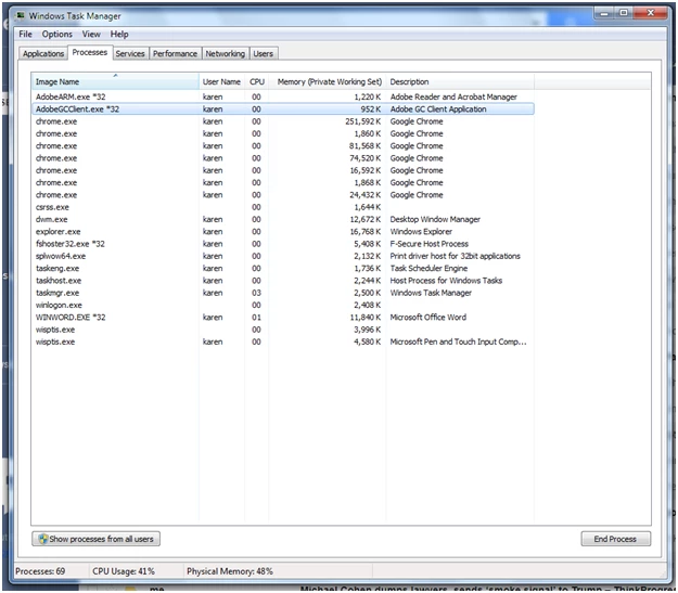Task manager within 15 minutes of turning on computer, MSWord, Chrome with mail tab open: