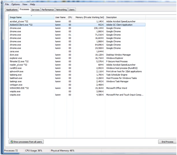 I wish Adobe would give people an option. I read in a forum concerning all this that the user thought Adobe added this so they could boast faster times, presumably to their investors or whatever. Otherwise, why would Adobe NOT offer an option to disable it running on start-up, or just permanently disabling the thing. I really don't care as much about Reader or Acrobat starting slowly - I don't use them that often - as much as I care about being able to quickly get to work in the morning, and not having to keep an eye on the Task Manager.
