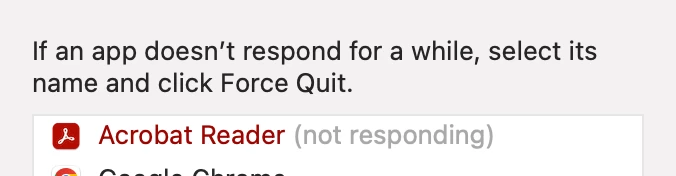 Suddenly when I try to use Acrobat reader (on my desktop Mac), a pop-up window requires me to sign into a Microsoft account. I never had, used a MS account on my Mac, but I do have a Microsoft account on a different Win10 PC. When I try to sign in with my current Microsoft account, I get an error message and I can't go any further. However, I can't close out the error message. I have to Force Quit Acrobat. So now I can't open PDFs. If I attempt to re-launch the application by double-clickin on a PDF file, the app launches but then goes unresponsive. How can I fix this.