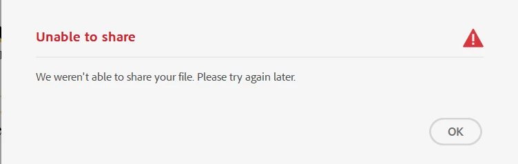I can't share a link to any files from both my accounts because an error keeps popping up "We weren't able to share your file. Please try again later". I have updated the app and repaired the installation, changed some security and general things in settings, tried sharing different files fromn different accounts and nothing seems to work. It also doesn't work while sharing by email or by adding other people to the file. What do I do?