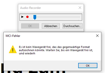It's in German and pretty much reads "There is currently no wave device available that could record in this format".