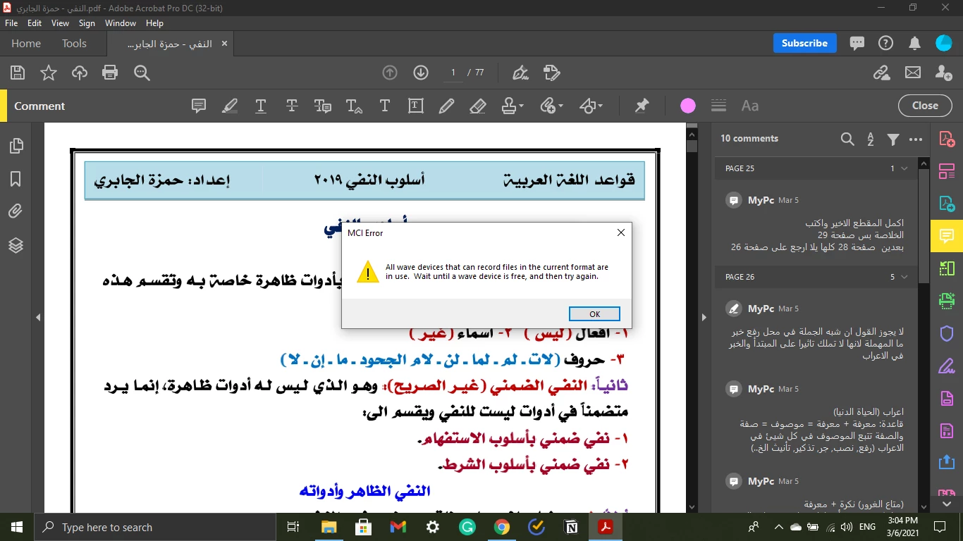 MCI-Error While Adding Audio Comments