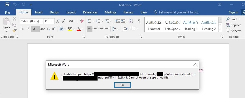 "Unable to open https://xxxxxxx.xxxxxxxxx.xxx/docs/pl456/CofiaCauyDrws%20Mae%20hi%20noer.pdf?T=11&LLL=1. Cannot open specified file.