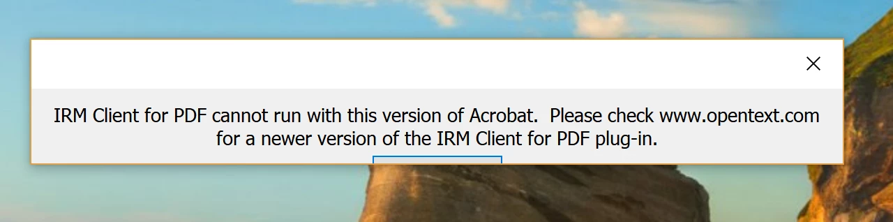 but 20071 and now 20074 pop up a message stating "IRM client for PDF cannot run with this version of Acrobat"