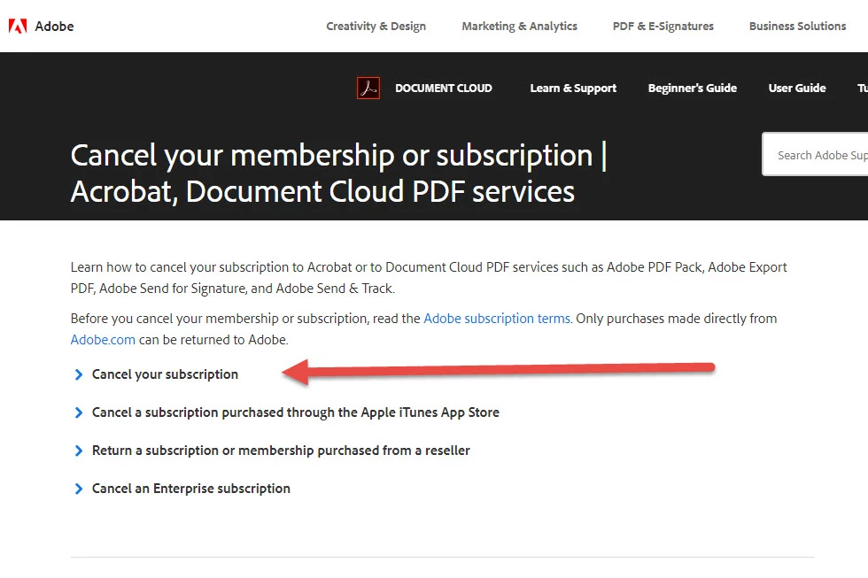 Cancel your membership or subscription | Adobe Acrobat, Document Cloud PDF services