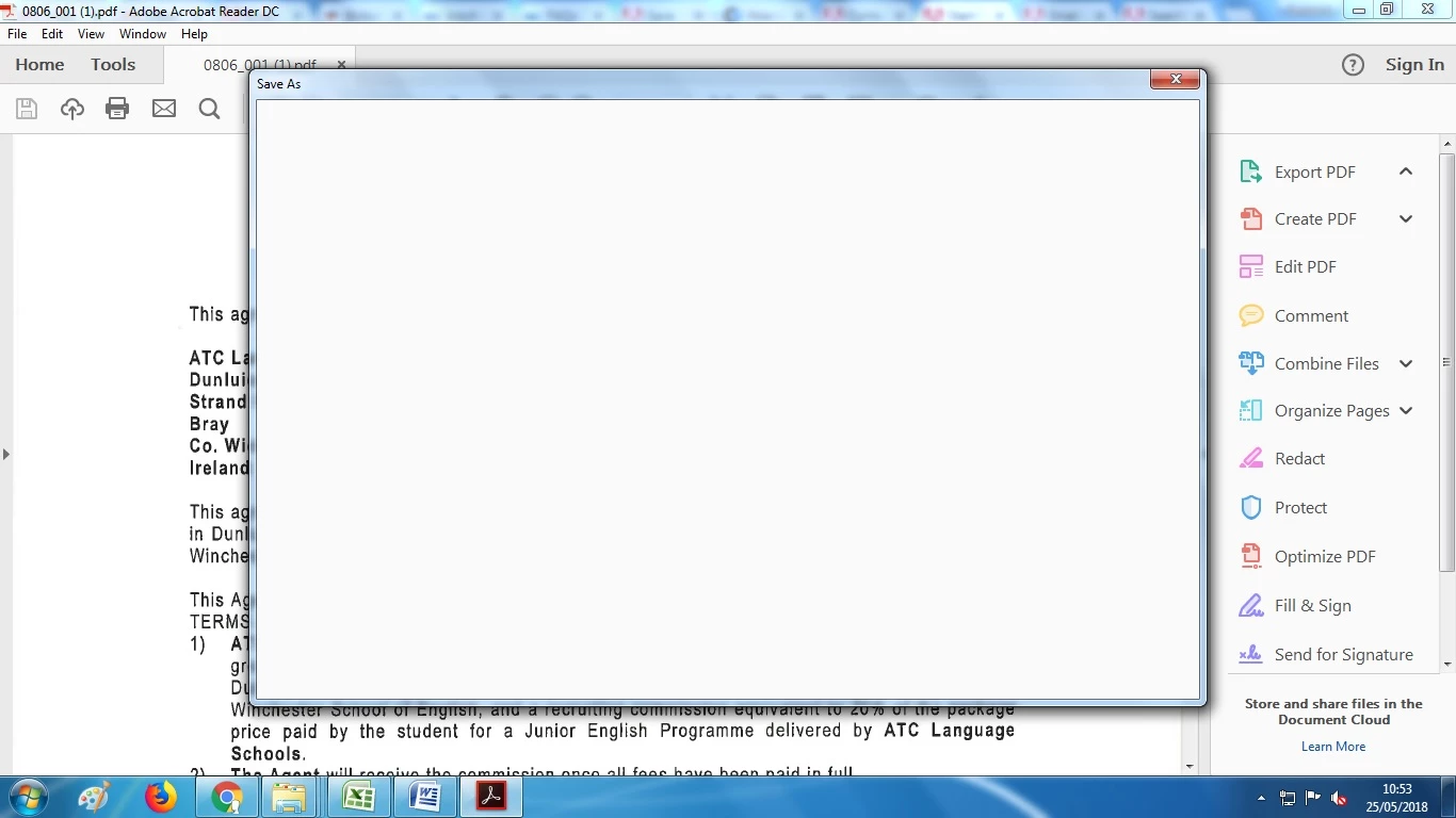 I am not able to save a pdf document to my computer. When I choose "Save As" a blank pop up appears and stays there until I exit out of it. Before I had no problems saving pdf's to my desktop. Does anyone have a solution to my problem?