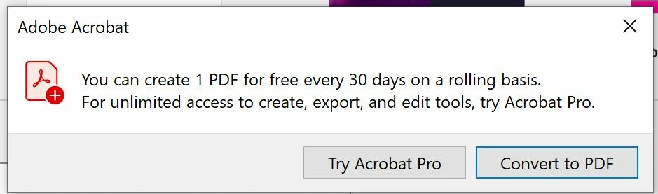 Now I get a pop-up msg. that I have to pay a subscription to convert more than one doc a month !?!?