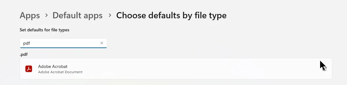 I've recently started installing Adobe Acrobat (Reader) during OS installaiton via Confoguration Managet from the Microsoft Store using Winget - the installation works perfectly fine, after the installation finishes I can login to the system and I can ope PDFs via the Reader application. When I open a PDF I get a popup message (screenshot below), which suggests that the reader application is not set as the default app to open PDFs and it is in my case, as I have a GPO that set's "Adobe Acrobat" as the default app to open .pdf files (screnshot below).