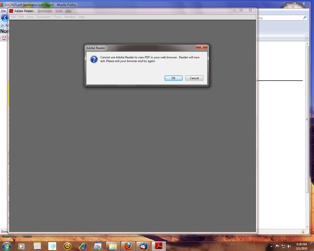 Tried reinstalling Adobe Reader 9.3 - no luck.
