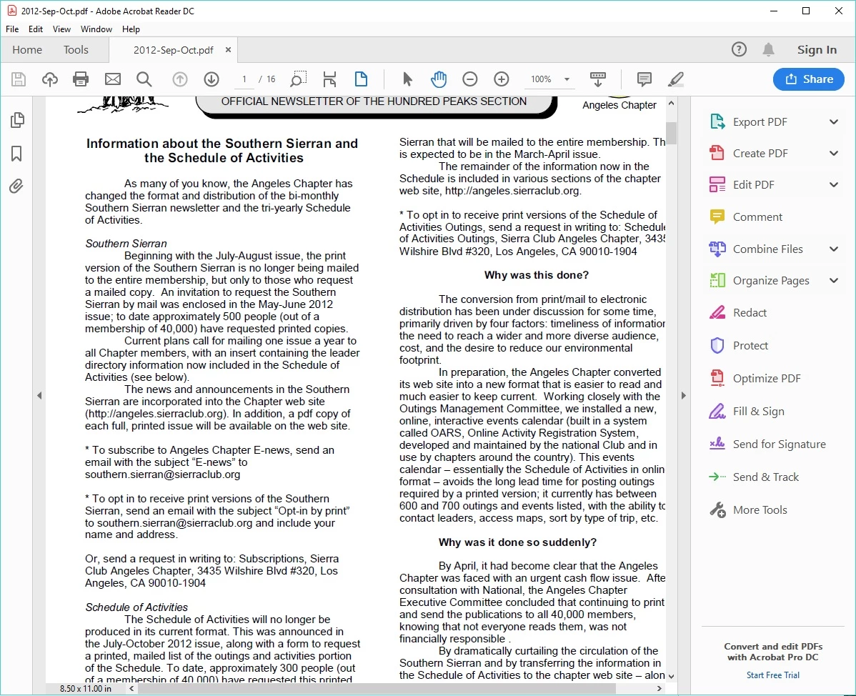 In previous versions of Reader, you could click on the "Single Page View" button and the Reader would display pages from the current document as individual pages.  In the new version, that view selection has little effect - the document displays in scroll mode whether "Single Page View" or "Enable Scrolling" is selected (and the button turns blue to show it is selected), the only difference being that in "Single Page View" the document jumps from the bottom of one page to the top of the next while in "Enable Scrolling" mode, it acts like a piano roll of continuous paper.  "Two Page View" and "Two Page Scrolling" function as expected, but with the "Page Display" commands, there is no way to get the document to show a complete single page (the way it used to).  Guess this is one of those times where an upgrade is not really an improvement.