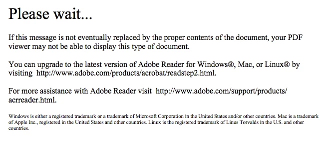 I have had trouble sending PDFs via e-mail. The PDF is fine when opened/viewed/edited on my computer but the person I send it to is unable to view it. This is the message they receive when they try to open the attachment: