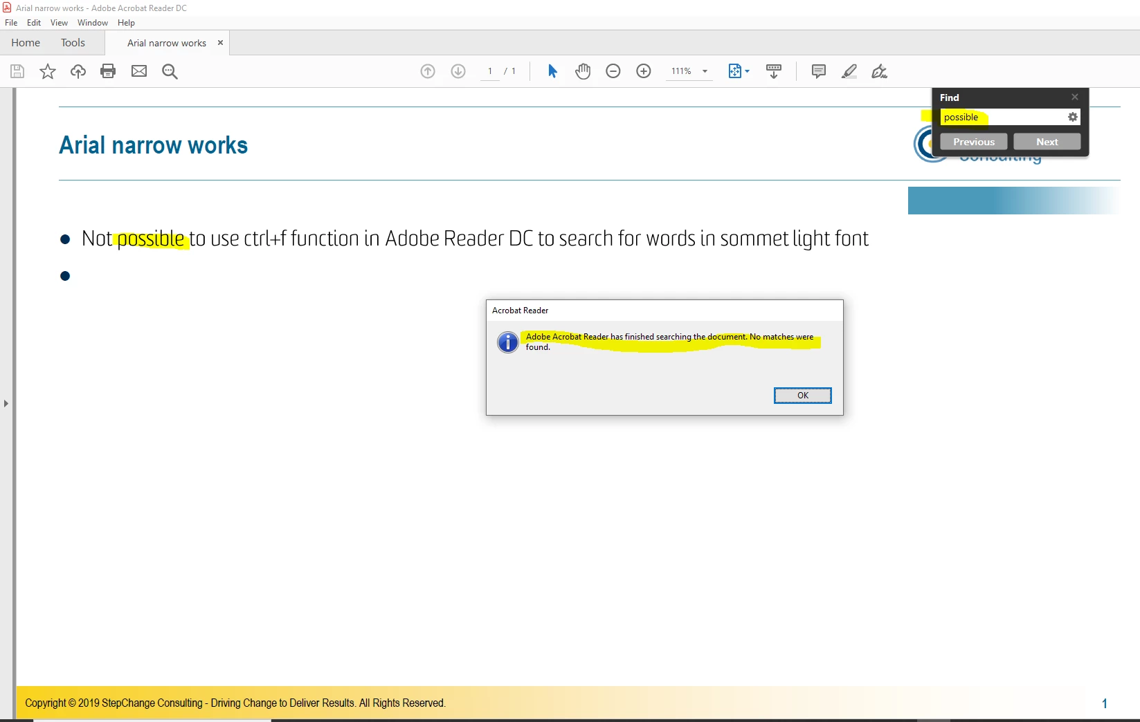 I have an issue. I have installed Sommet Light for my word and power point. When I create a pdf from these two solutions that contain sommet light text, and then search for a word in pdf file, it doesn't give me any value, as if it can't search through sommet light. can someone help me with that please?