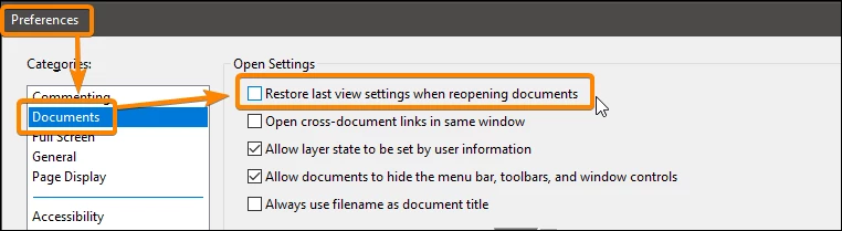 I am using Adobe Acrobat Reader on Windows 10. Is there a feature that if I read a PDF book till 50 pages and close it and again if I open the PDF it will open at 50 page?
