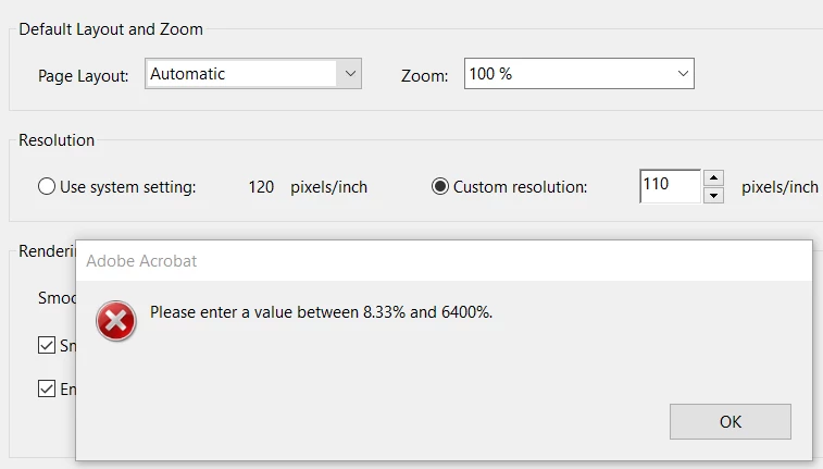 Not much to write about this bug / glitch that happens when I try to set a default zoom percent.