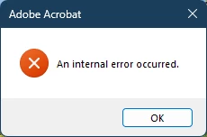 Popup "An internal error occurred" although Acrobat Reader is not running