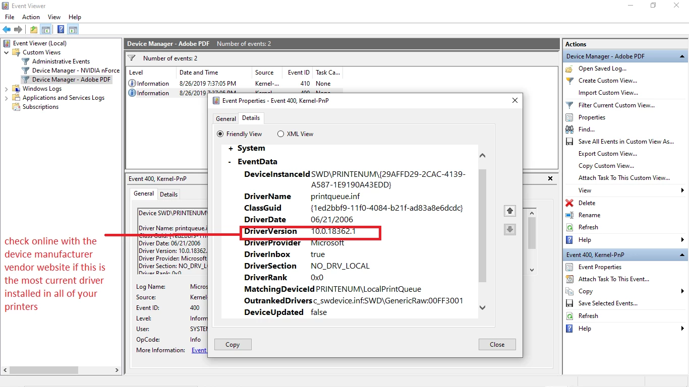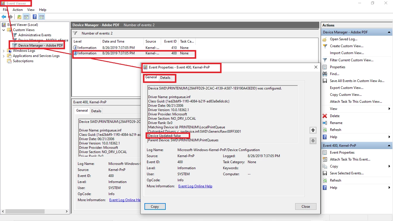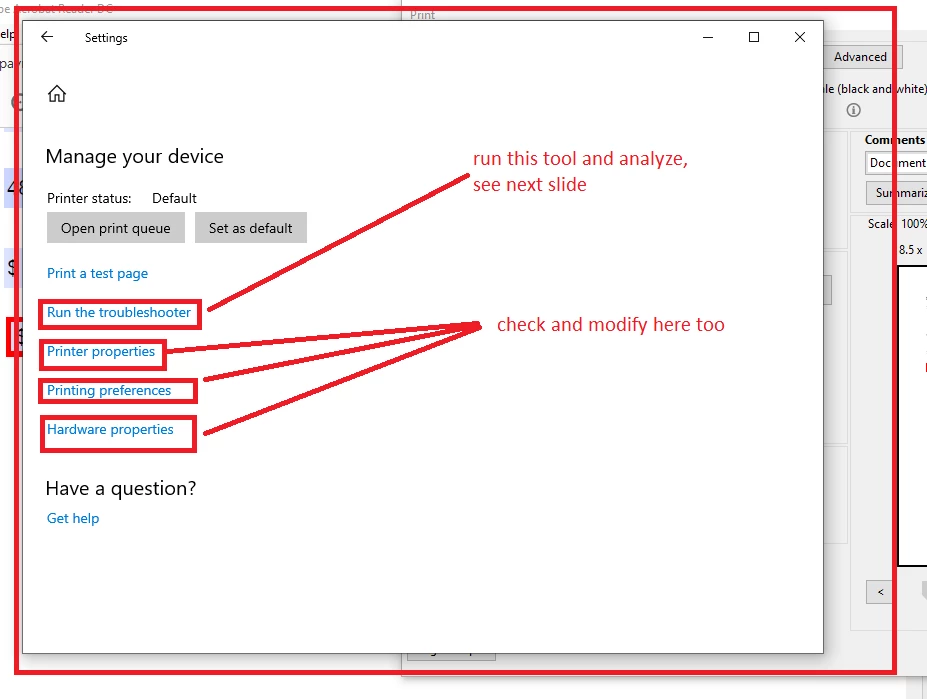 When working with the free Adobe Acrobat Reader DC product, I had problems printing .pdf files. When you first enter the application, the checkmark "select paper source by page size PDF" is active
