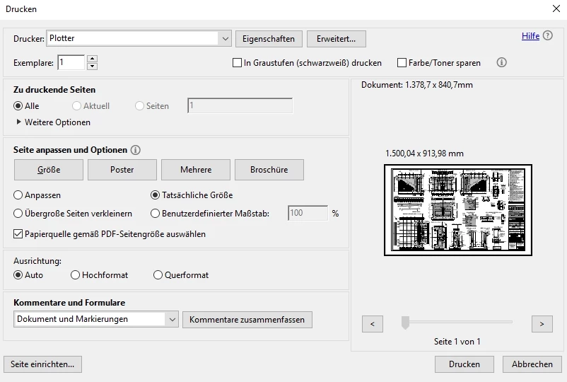 In the print preview, the dokument is centered on the sheet: