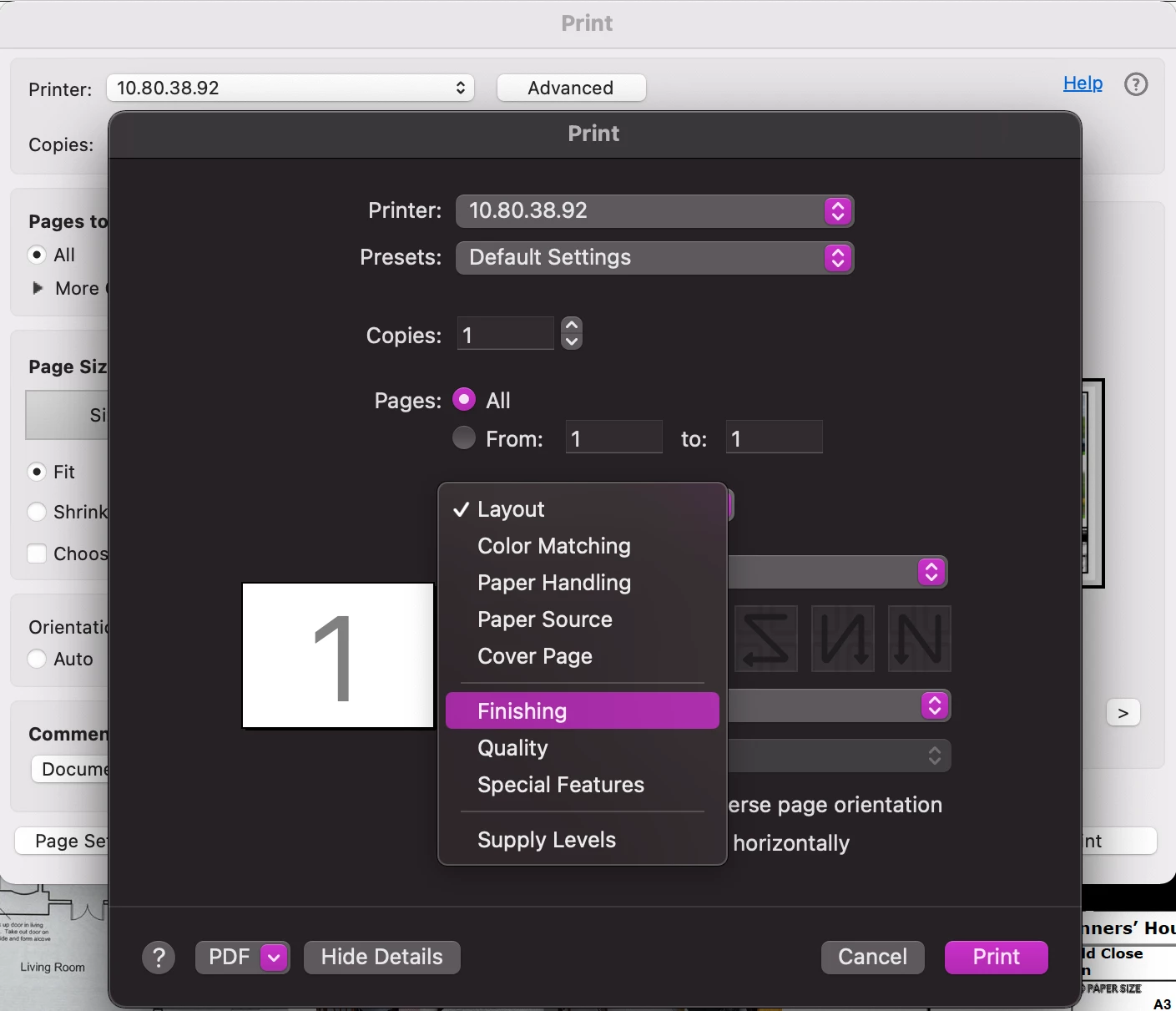 Print single sided on Mac