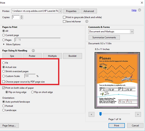 I am a seamstress and I buy a lot of PDF patterns which the designers prefer using adobe for printing out the patterns. My problem is my pattern pieces never line up just right and I think I've figured out why. My current settings are for letter but under Document on the print window it lists: 7.0 x 10. and 8.5 x 11. I'm wondering if that added 7x10 is what is throwing off the alignment of my pieces. I've pressed every single thing I could in the print window but nothing takes away that 7x10 so it only shows the 8.5 x 11. Is there a way to set it so it only prints 8.5 x 11? TIA
