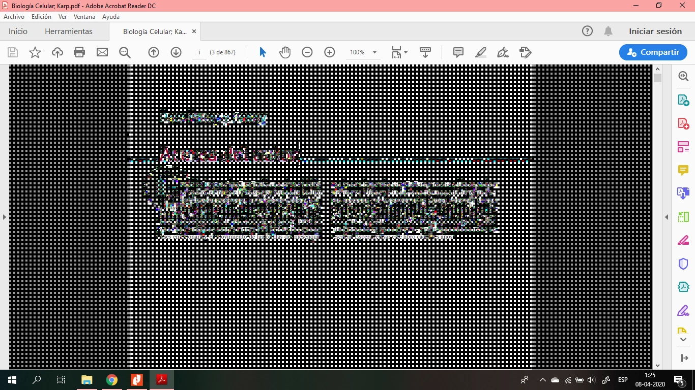 I don't know why, but every time I open a pdf file with Adobe Reader, it doesn't shows correctly, the file becomes weird, like a cromatic aberration. It disapears when i select the page, but when i touch it, for example to highlight a word or sentence, there it is again.