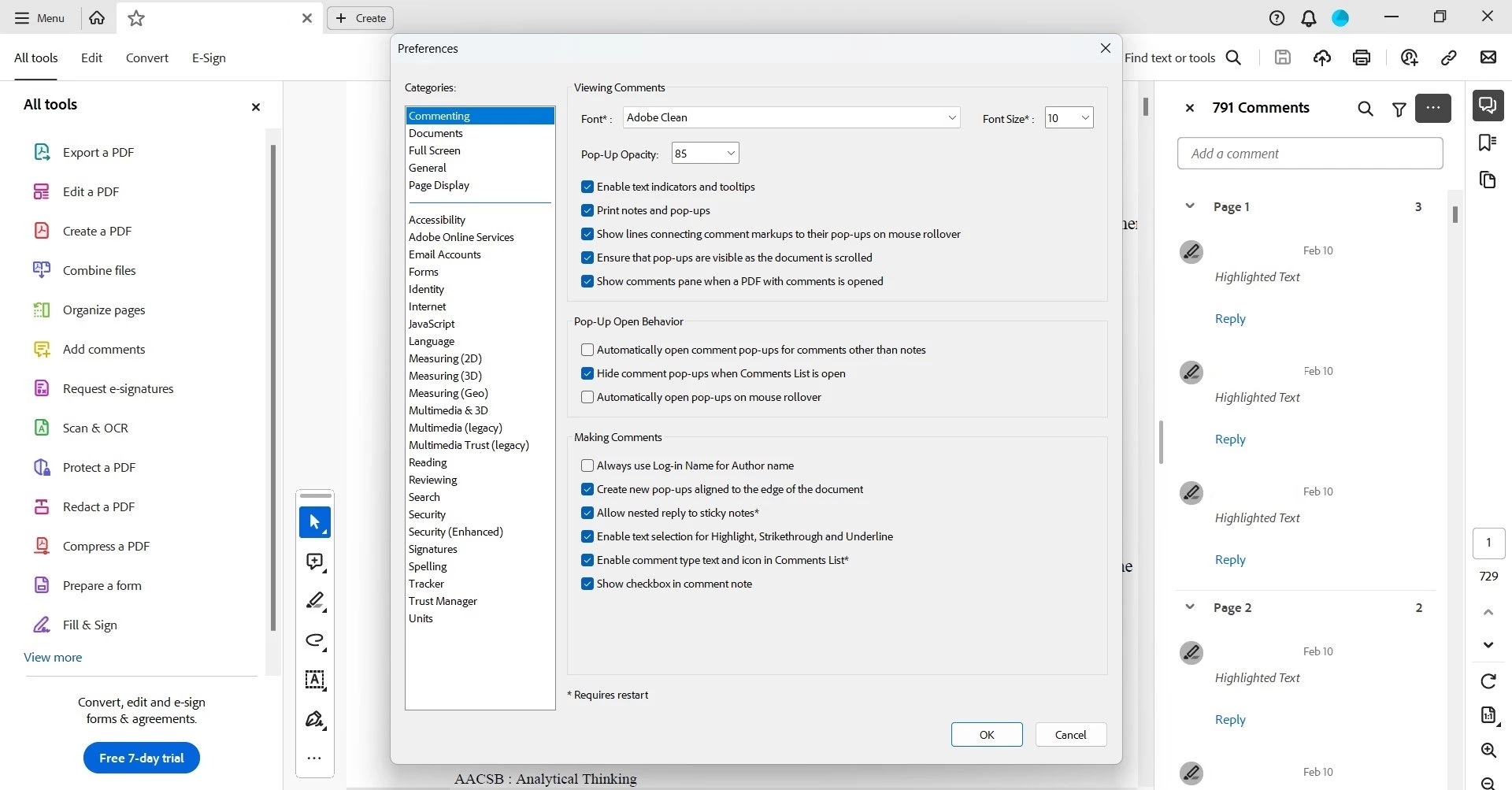 I am using the free Adobe Acrobat Reader on a Windows computer.