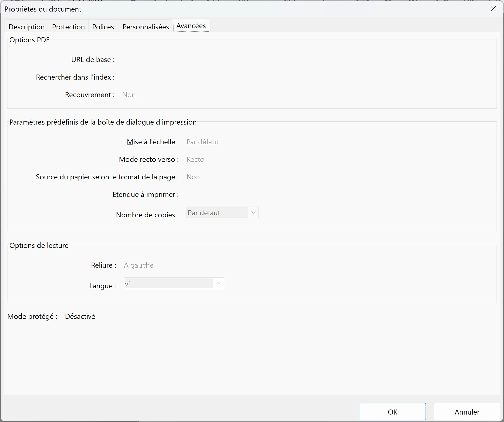 Hello, when I go to the properties, be it inside Adobe Reader or in Windows Explorer, I don't have any document property called "Initial View", and the properties window is different.