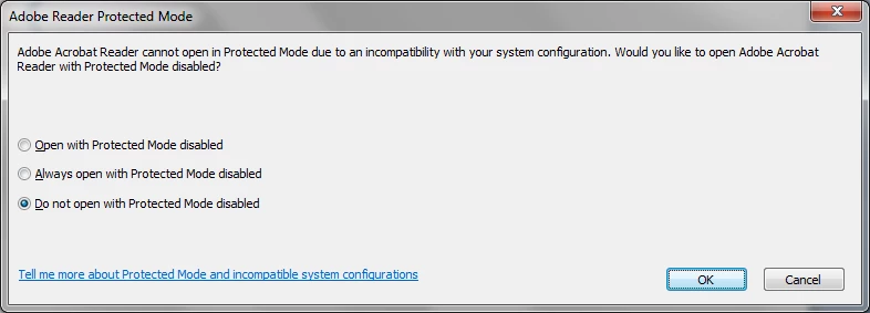 Reader 23 on Win7 can't open in Protected mode only when saving as PDF from MS Word Starter 2010