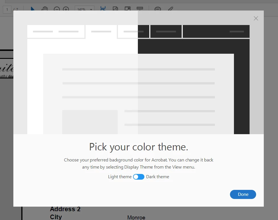 Reader DC -- "Pick your color theme" Pop-up occurs EVERY time program is launched.