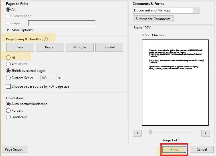 The pdf form that I have downloaded needs to be larger so that the printed copy fills more of the page. How do I do this.