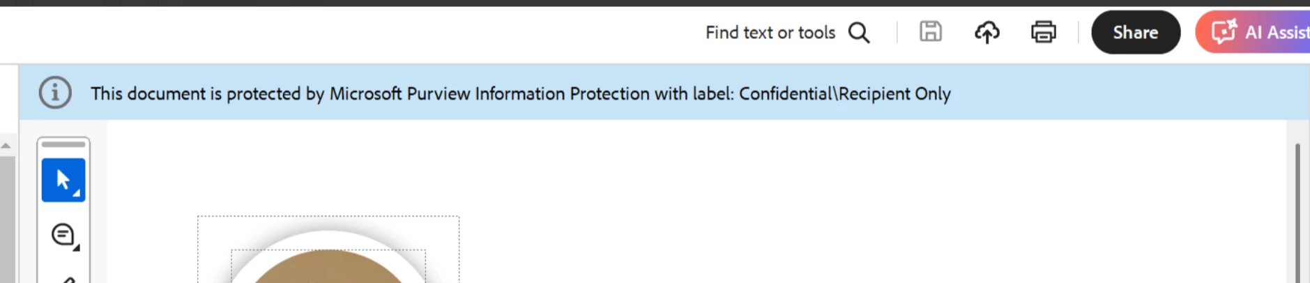 Make sure you're signed in with the same Microsoft 365 account that has rights to access the labelled PDF.