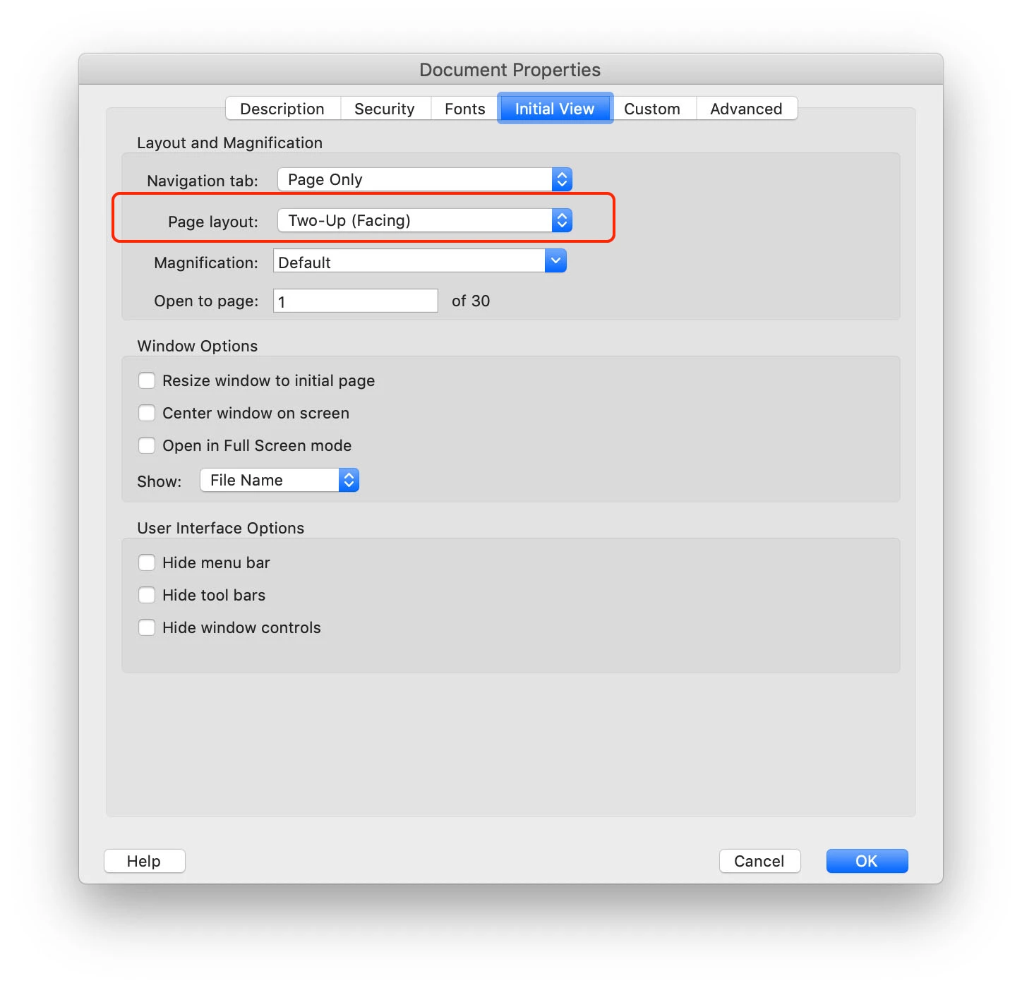 Page Layout -> Two-Up Continuous