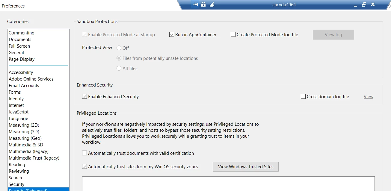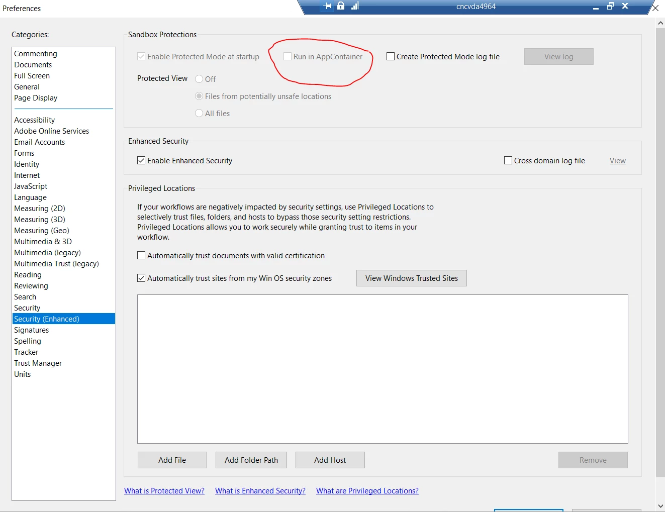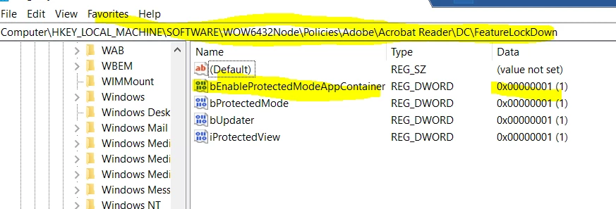 I'm attempting to Enable and Lock down Run in AppContianer by modifying the registry. If I enable Run in appContiner it works fine but if I enable and lock it down the check box disapears and the option is grayed out.