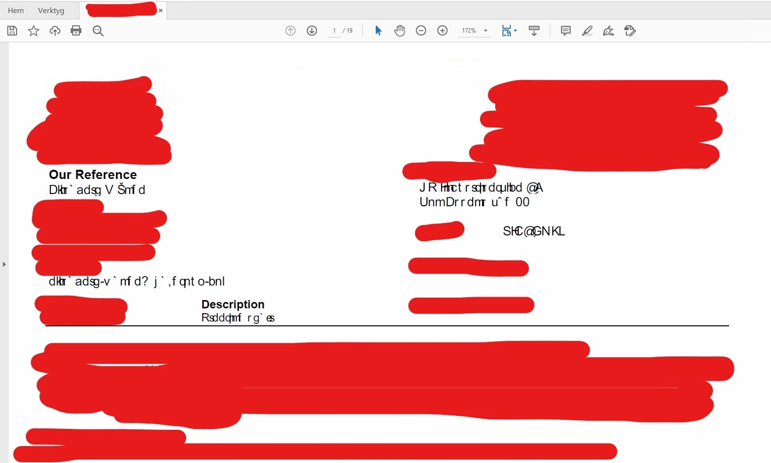 We are having a problem with one of our users getting text swaped with random and scrambled symbols in some PDFs. The problem seems to get temporarly fixed by logging out and in on the server but it keeps coming back.