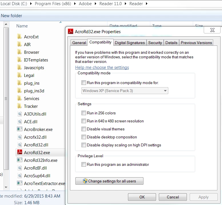 Screen Resolution Changes when using Adobe Reader XI in Windows 8, 64-bit