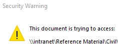 If by some chance I can't do the option of opening in a web browser again. Could I possibly get a way to prevent the security warning that pops up for my intranet? I see how you can add websites to the trust list but there is no option of adding a local server (My Intranet) so that I don't get prompts every time I open a link inside a document stored on our network.
