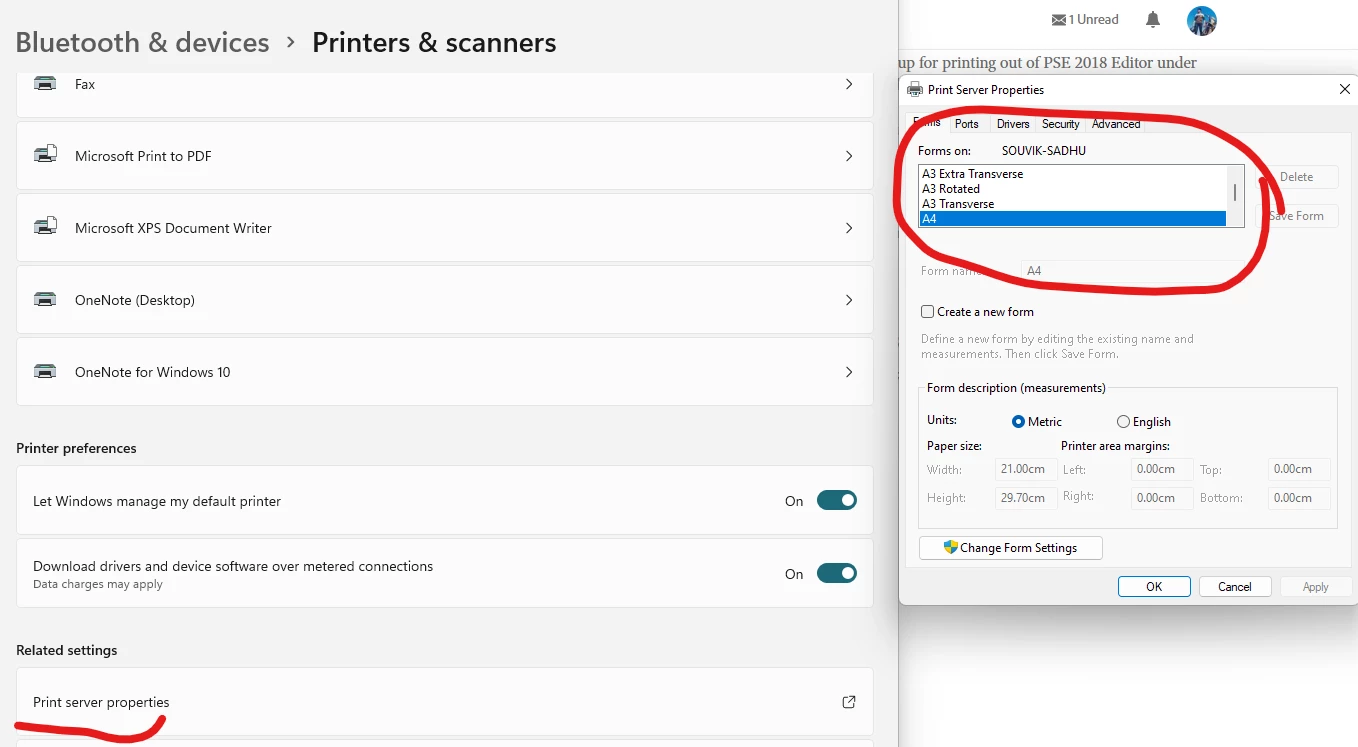 Set default paper size for printing to A4