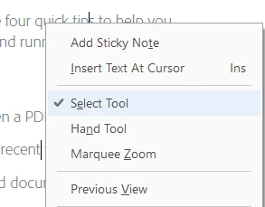 I get the hand tool every time and have to click the text selector arrow on the toolbar every time I open a document. I have googled for at least an hour and tried everything. I. ONLY. WANT. THE. SELECT. CURSOR.