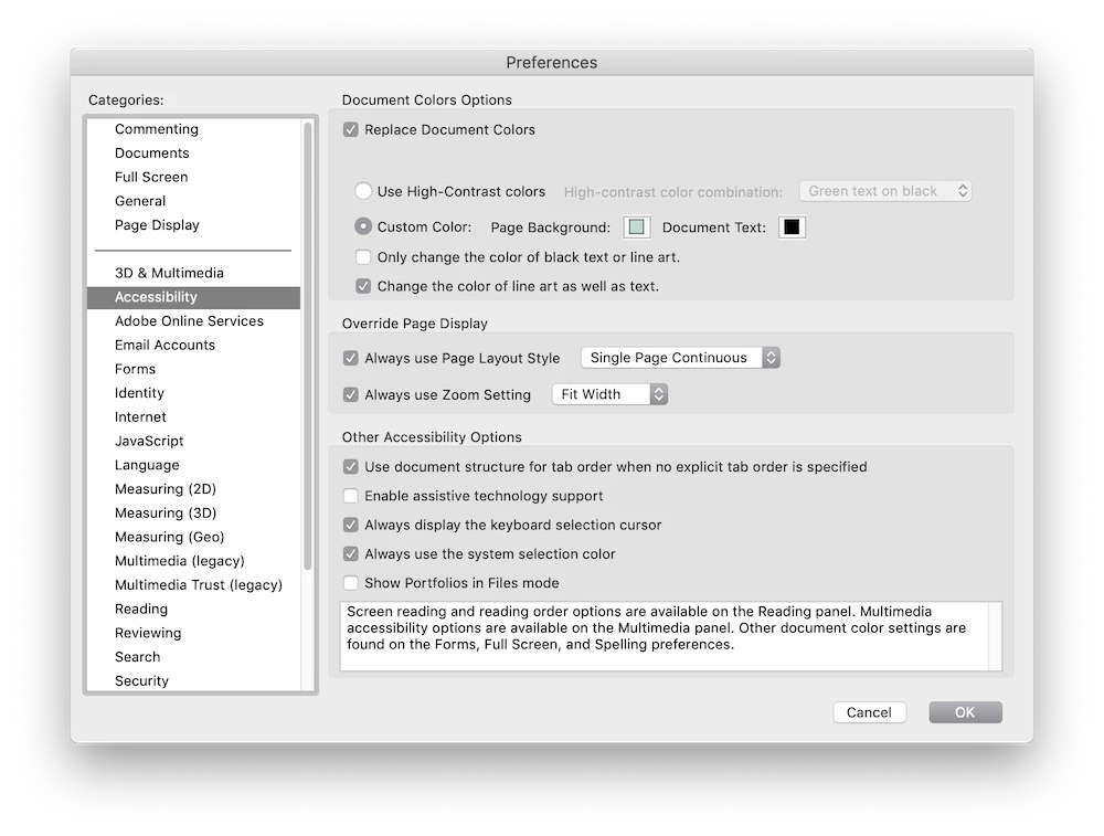 3. If again the document is switched back to the customized color, this will happen (in fact I first encountered Case 3 upon a restart after Adobe reader DC updated):
