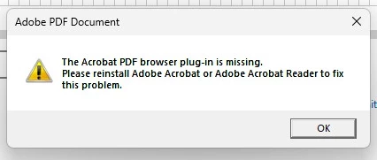 "The Acrobat PDF browser plug-in is missing" error for multiple users