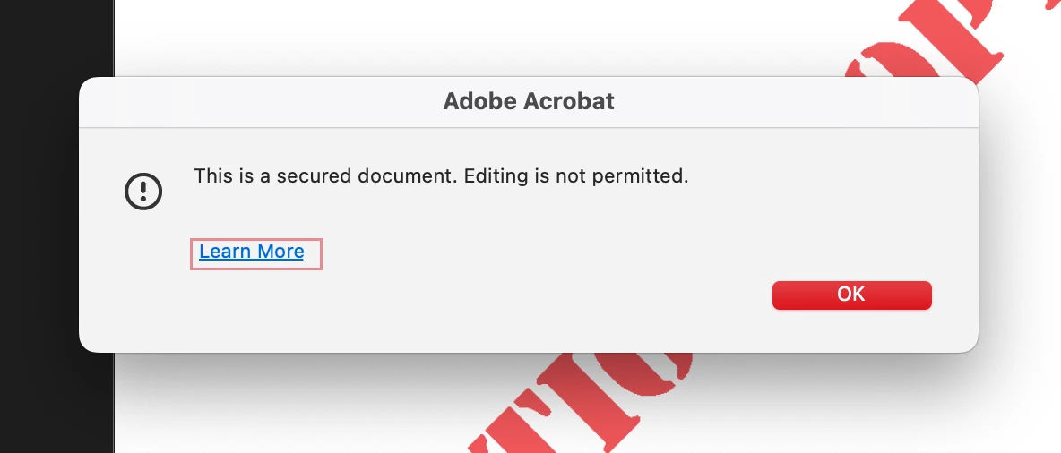 The correct Acrobat password won't let me edit or print to PDF