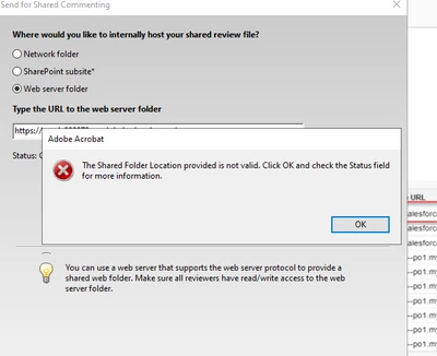 I am getting error "The Shared Folder Location Provided is not valid" when trying to connect for shared review. Find some details