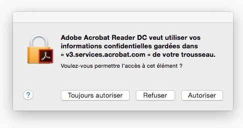 acrobat reader me demande d'acceded a mon trousseau sur mac ! et su je réponds non il bloque mon ordi