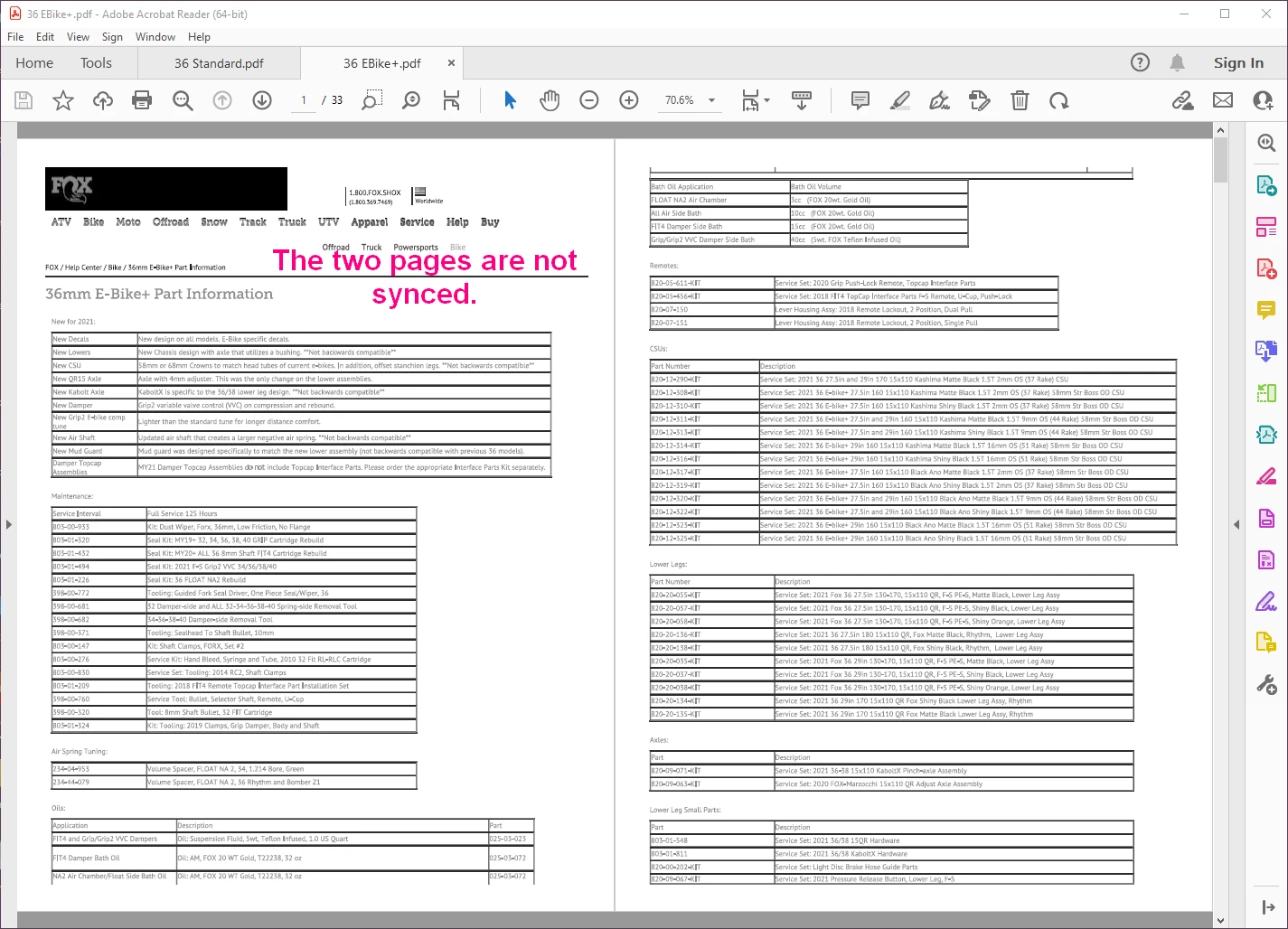 I want to view two similar PDFs side by side. I open them and select two-page view the two pages are not synced. The page on the right is scrolled (or something) about one-half page down. I cannot see the top half of the page on the right.
