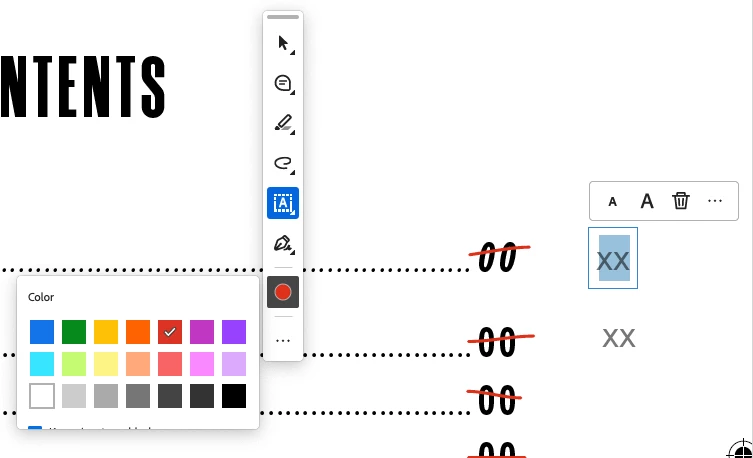 I'm marking up a PDF that I didn't create and using the new type text feature to put a comment in the margin. I can highlight the text and the color menu comes up. It will let me change the color, but it only shows up gray or black. As in, I pick red text and the text looks dark gray. I pick yellow and it turns light gray, but it won't show the actual color. Meanwhile, the freestyle line drawing tool works and the color shows up red. Why won't the text show the right color?