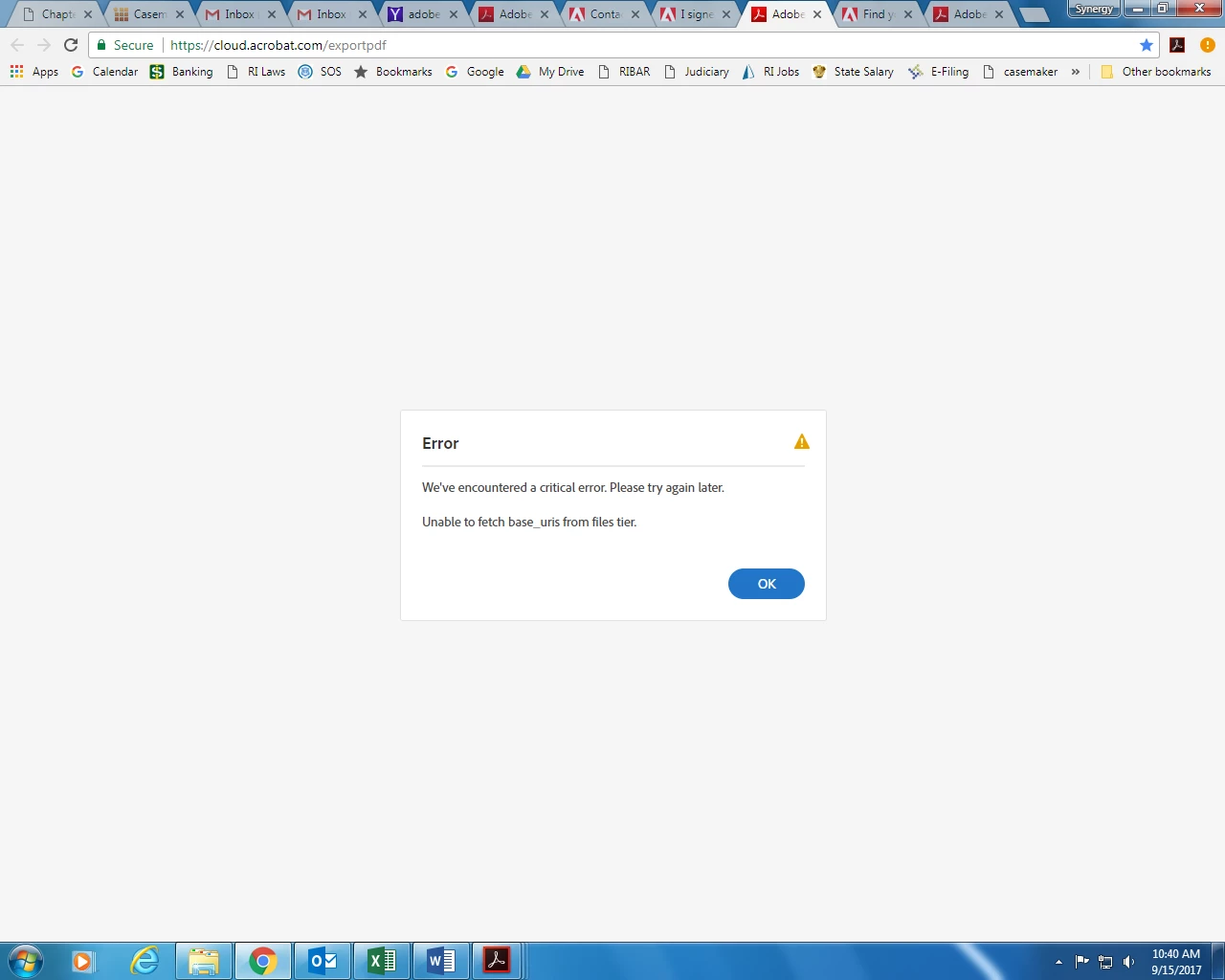 This is extremely frustrating that a common problem with file conversion has been going on for several years.  Several threads and forums say to connect http://cloud.acrobat.com/exportpdf