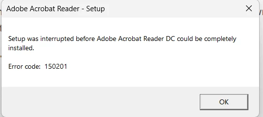 Unable to install Acrobat Reader